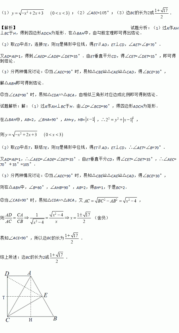 (3)当△ACE为直角三角形时,求边BC的长.