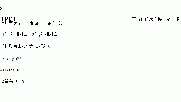 若要使图中平面展开图折叠成正方体后,相对面上两个数之和为6,则x+y=_____.