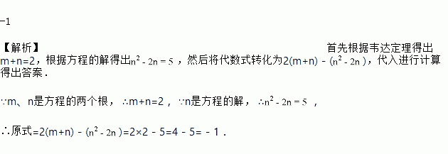 已知方程x2-2x-5=0的两个根是m和n,则2m+4n-n2的值为______ .