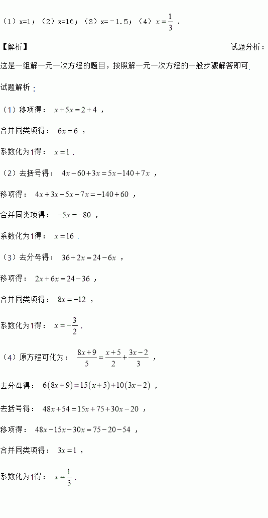 (2)4x﹣3(20﹣x)=5x﹣7(20﹣x);
