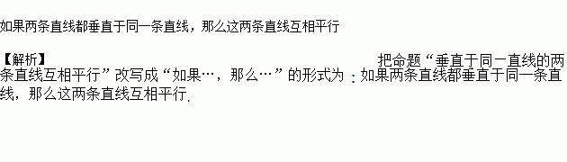 把命题“垂直于同―直线的两条直线互相平行”改写成“如果…,那么…”的形式为_____________.