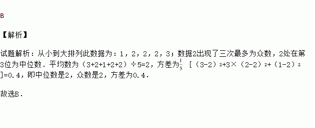 一组数据3、2、1、2、2的众数,中位数,方差分别是( )