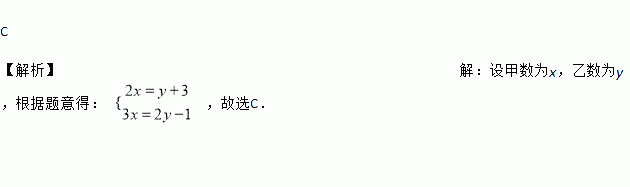 甲数的2倍比乙数大3,甲数的3倍比乙数的2倍小1,若设甲数为x,乙数为y,则根据题意可列出的方程组为( )