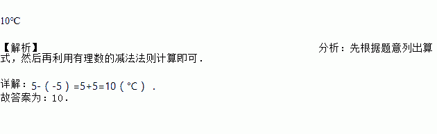 某日的最高气温为5℃,最低气温为-5℃,则这一天的最高气温比最低气温高 ______℃.
