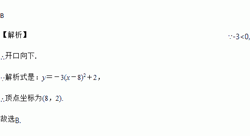 A. 开口向上,顶点坐标为(8,2) B. 开口向下,顶点坐标为(8,2)