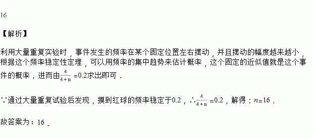 个,每次摸球前先将盒中的球摇匀,随机摸出一个球记下颜色后再放回盒中,通过大量重复试验后发现,摸到红球的频率稳定于![]()