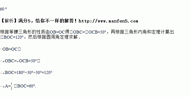如图,⊙O是△ABC的外接圆,∠OCB=30°,则∠A的度数等于____.