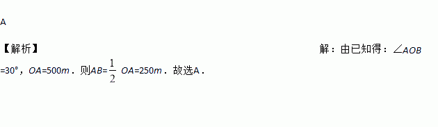 如图,小郑家(图中点O处)门前有一条东西走向的公路,经测得有一水塔(图中点A处),在她家北偏东60°度500米处,那么水塔所在的位置到公路的距离AB是( )