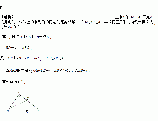 如图,Rt△ABC中,∠C=90°,BD平分∠ABC交边AC于点D,CD=4,△ABD的面积为10,则AB的长是_____.