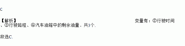 假设汽车匀速行驶在高速公路上,那么在下列各量中,变量的个数是( )