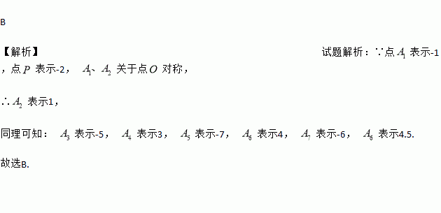 B 【解析】试题解析:∵点表示-1,点表示-2, 关于点对称, ∴表示1, 同理可知: 表示-5, 表示3, 表示-7, 表示4, 表示-6, 表示4.5. 故选B.