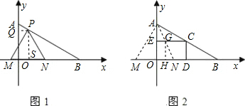 (3)如果取OB的中点D,以OD为边在Rt△AOB内部作如图2所示的矩形ODCE,点C在线段AB上.设等边△PMN和矩形ODCE重叠部分的面积为S,请求
