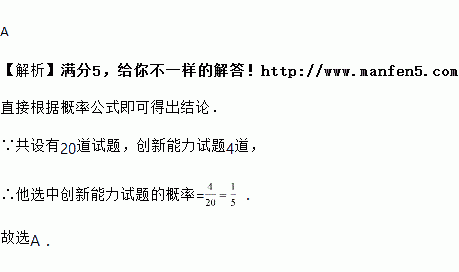道.小婕从中任选一道试题作答,他选中创新能力试题的概率是( )![]()