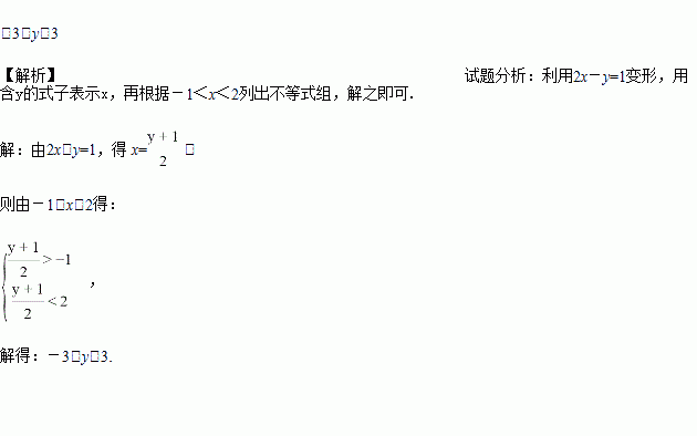 已知2x-y=1,且-1<x<2,求y的取值范围.