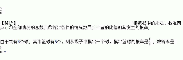 不透明袋子中装有5个红色球和3个蓝色球,这些球除了颜色外没有其他差别.从袋子中随机摸出一个球,摸出蓝色球的概率为_______.