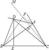 13.分析 在四边形ADBC内作∠BCM=60°,CM交AB于N,在射线CM上取一点F,使FB=FC,连接FB,FA,于是得到△FBC是等边三角形,求出CD=BC=FB=FC,由于∠BCA-∠ACD=60°,于是得到∠BCA-60°=∠ACD,即∠FCA=∠ACD,证得△ACF≌△ACD,根据全等三角形的性质得到AF=AD,若F与N不重合,(∠B≠60°),AD+CD>AB,若F与N重合,(∠B=60°),AD+CD=AB,于是得到结论.