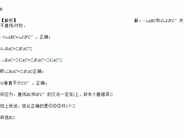 Èçͼ£¬¡÷ABCºÍ¡÷A¡äB¡äC¡ä¹ØÓÚÖ±Ïßl¶Ô³Æ£¬ÏÂÁнáÂÛÖУº