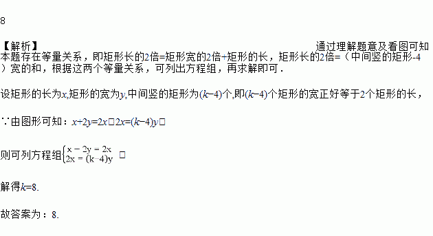 如图,正方形是由k个相同的矩形组成,上下各有2个水平放置的矩形,中间竖放若干个矩形,则k=_____.
