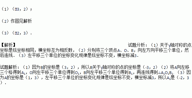 (2)将△AOB向左平移3个单位长度得到△A1O1B1,请画出△A1O1B1;