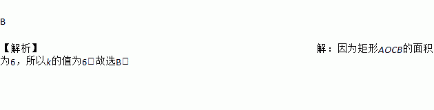 如图,点B是反比例函数(k≠0)在第一象限内图象上的一点,过点B作BA⊥x轴于点A,BC⊥y轴于点C,矩形AOCB的面积为6,则k的值为( )
