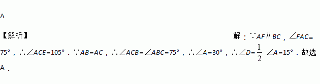 如图,AB=AC,AF∥BC,∠FAC=75°,E为BC延长线上一点,∠ABC与∠ACE的平分线相交于点D,则∠D的度数为( )