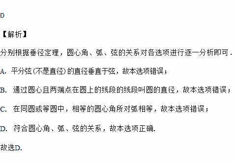 C. 相等的圆心角所对弧相等 D. 在同一圆中,相等的弧所对圆心角相等