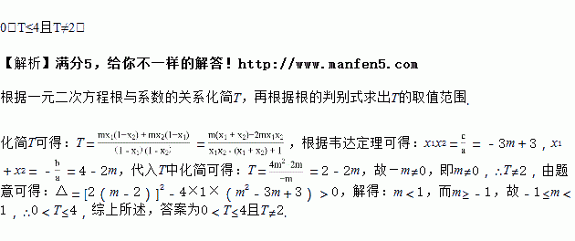 设是不小于﹣1的实数,关于x的方程有两个不相等的实数根,令T= ,则T的取值范围是_______.
