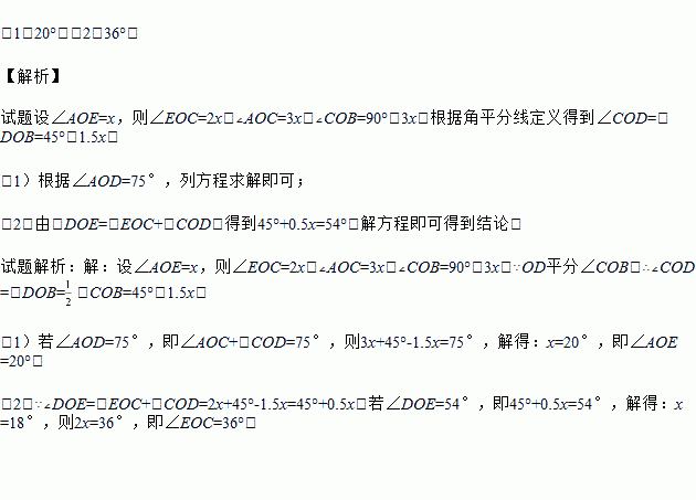 如图,∠AOC与∠BOC互余,OD平分∠BOC,∠EOC=2∠AOE.