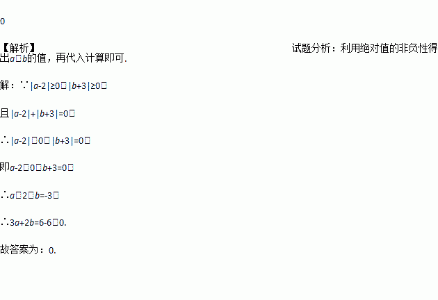 若|a-2|+|b+3|=0,则3a+2b=_______.