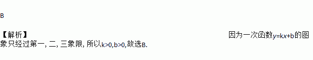 B 【解析】因为一次函数y=kx+b的图象只经过第一,二,三象限,所以k>0,b>0,故选B.