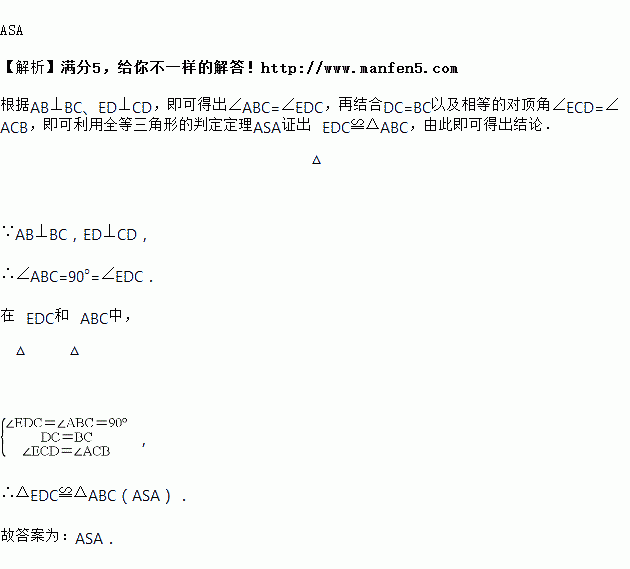 如图,要测量河岸相对的,两点之间的距离,先在的延长线上取一点,使,再过点作垂线,使,,在一条直线上,则的依据是________.