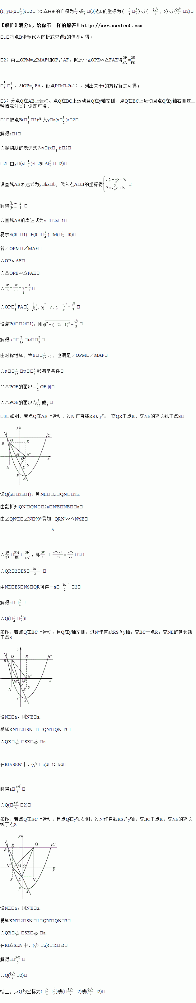 (2)如图1,直线AB与x轴相交于点M,与y轴相交于点E,抛物线与y轴相交于点F,在直线AB上有一点P,若∠OPM=∠MAF,求△POE的面积;