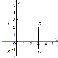 一个长方形在平面直角坐标系中三个顶点的坐标分别为(-1,-1)、(-1,2)、(3,-1),则第四个顶的坐标为
