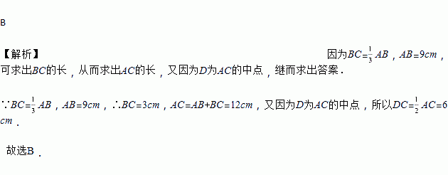 已知线段AB,延长AB到点C,使BC=AB,D为AC的中点,若AB=9 cm,则DC的长为( )