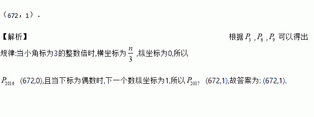 如图,在平面直角坐标系中,一动点从原点O出发,沿着箭头所示方向,每次移动1个单位,依次得到点P1(0,1),P2(1,1),P3(1,0),P4(1,﹣1),P5(2,﹣1),P6(2,0),…,则点P2017的坐标是______.