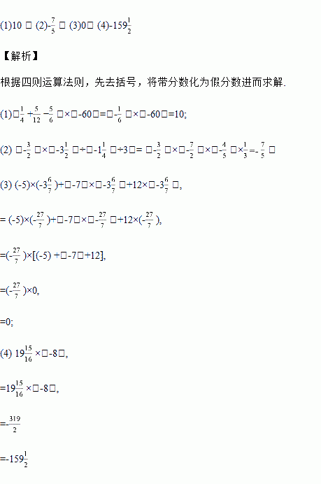 (1)(+?)×(-60) (2) (-)×(-3)÷(-1)÷3;