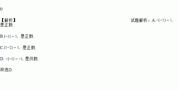 A. ﹣(﹣1) B. |﹣1| C. |1﹣2| D. ﹣|﹣1|