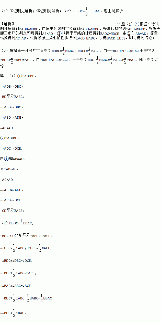 (1)求证:①AB=AD; ②CD平分∠ACE.