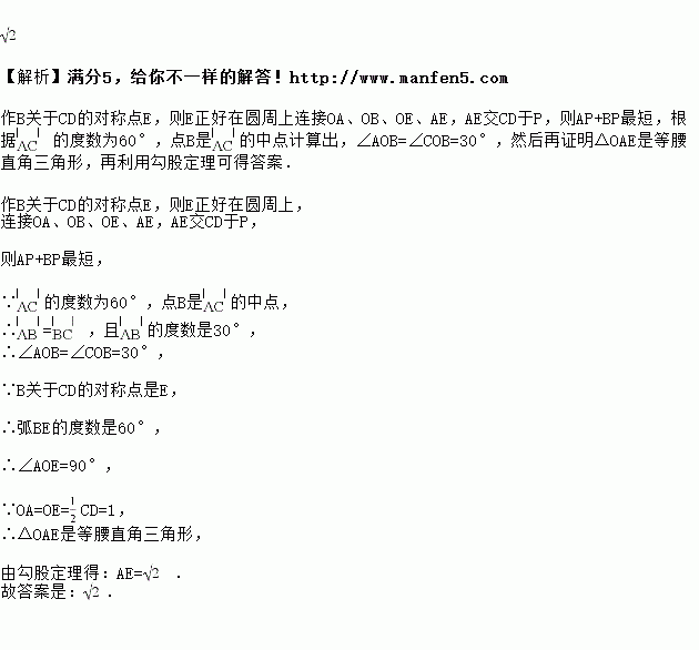 如图,已知的直径为,的度数为,点是的中点,在直径上作出点,使的值最小,则的最小值为________.