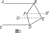 分析 (1)首先作EG∥AB,FH∥AB,利用平行线的性质可得∠ABE+∠CDE=290°,再利用角平分线的定义得到∠ABF+∠CDF=145°,从而得到∠BFD的度数;
