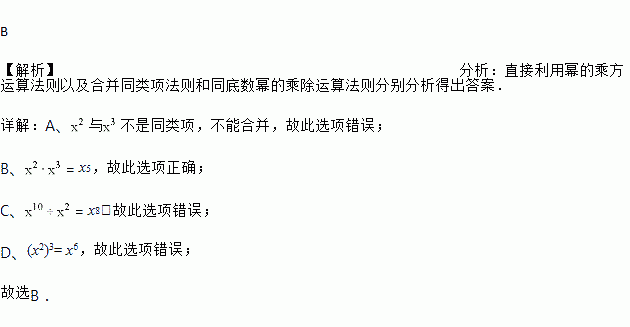 下列计算,结果等于x5的是( ).