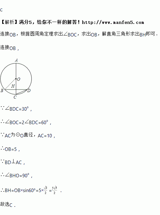 一个圆锥的侧面展开图是半径为的半圆,则该圆锥的高是( )