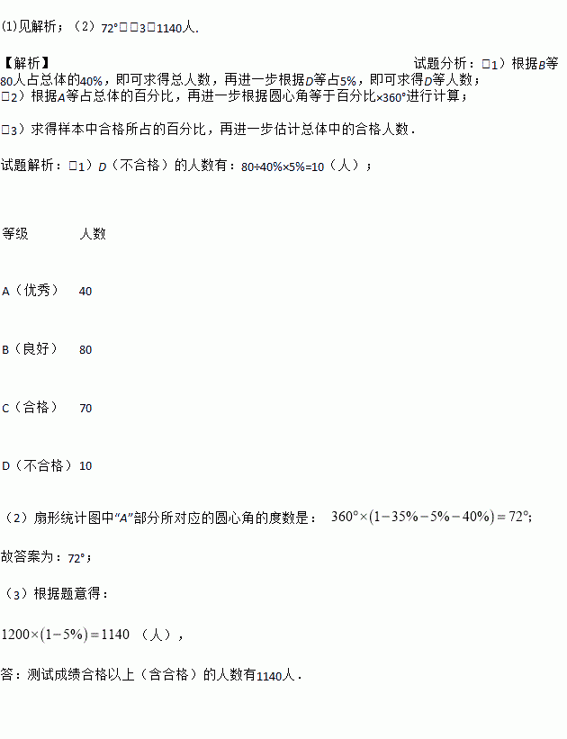 (3)该校八年级共有1200名学生参加了身体素质测试,试估计测试成绩合格以上(含合格)的人数.