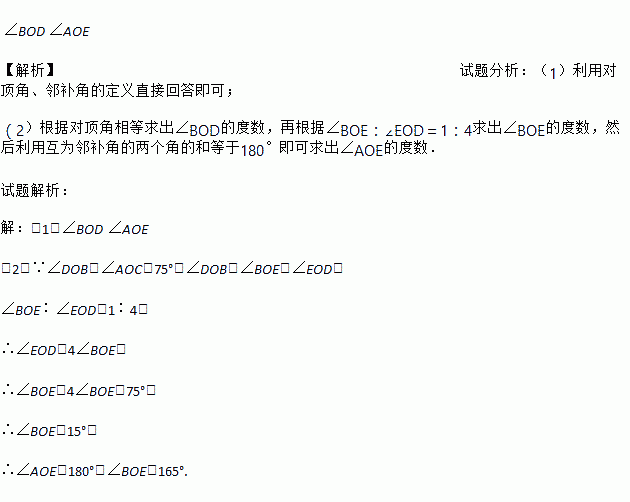 (2)Èô¡ÏAOC£½75¡ã£¬ÇÒ¡ÏBOE¡Ã¡ÏEOD£½1¡Ã4£¬Çó¡ÏAOEµÄ¶ÈÊý£®