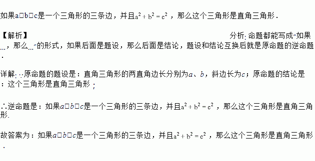 把命题“如果直角三角形的两直角边长分别为a、b,斜边长为c,那么”的逆命题改写成“如果……,那么……”的形式:_____________________________