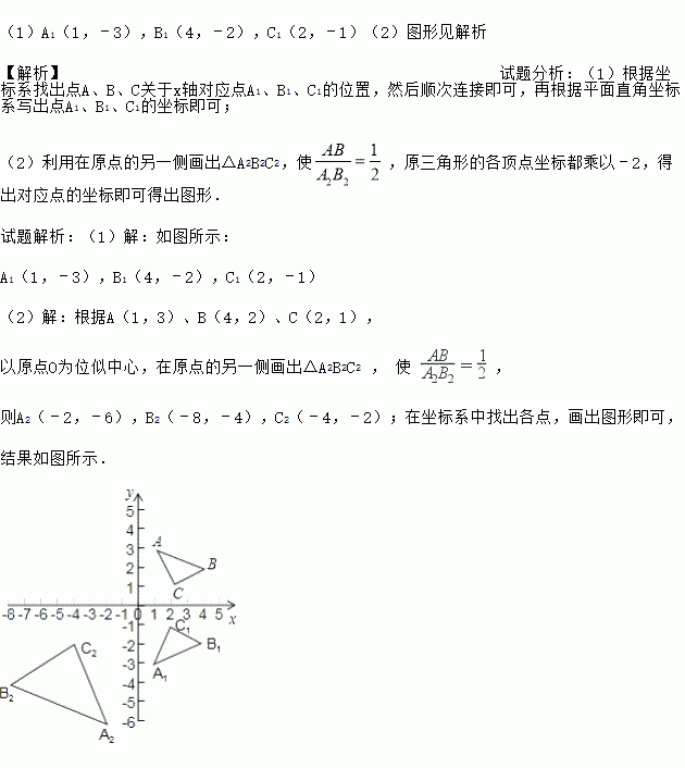 (1)作出与△ABC关于x轴对称的△A1B1C1, 并写出A1、B1、C1的坐标;