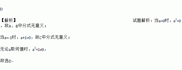无论a取何值时,下列分式一定有意义的是