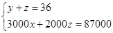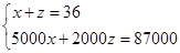 【解析】分三种情况:一是购买A+B=36,A的单价×数量+B的单价×数量=87000;二是购买A+C=36,A的单价×数量+C的单价×数量=87000;三是购买B+C=36,B的单价×数量+C的单价×数量=87000.