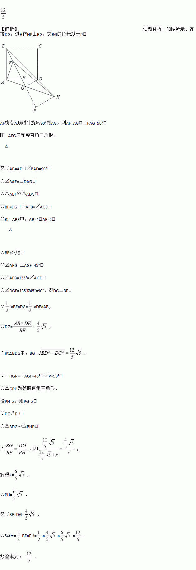 正方形ABCD中,点E是边AD的中点.连接BE,在BE上找一点F,连接AF,将AF绕点A顺时针旋转90°到AG,点F与点G对应.AG、BD延长线交于点H.若AB=4,当F、E、G三点共线时,求S△BFH=_____.