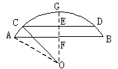 | 解:如图,设圆弧所在圆的圆心为O, AB=37.4=14 在Rt△OCE中,OE=OC-6, CE=10 ∵OC2=CE2+OE2 ∴OC2=(10 ∴OA=28 在Rt△OAF中,AF=7 ∴ ∴拱高GF=28-21=7(m)。 |